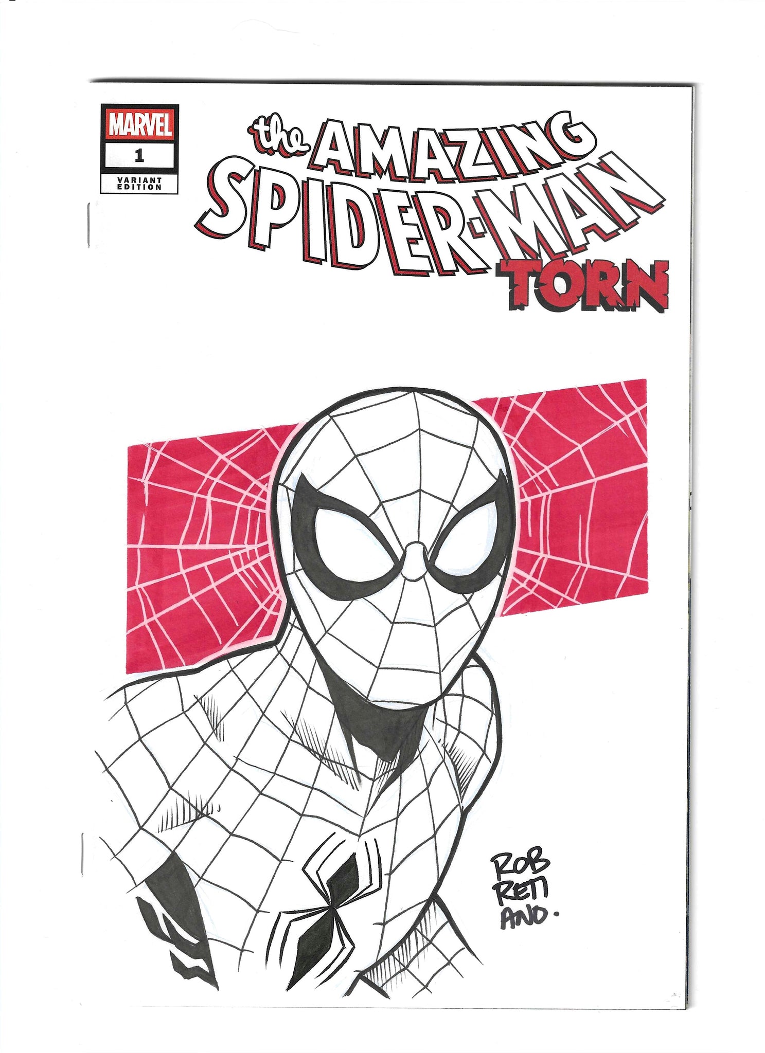 Add this exceptional Amazing Spider-Man #1 Torn sketch cover to your collection! Featuring original artwork by acclaimed artist Rob Retiano, this piece showcases a classic Spider-Man portrait with dynamic web-slinging action.
